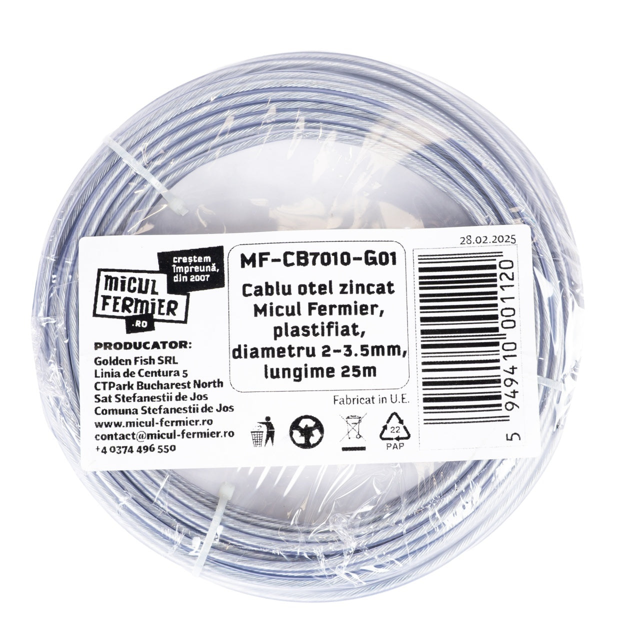 Cablu otel zincat Micul Fermier, plastifiat, diametru 2-3.5mm, lungime 25m