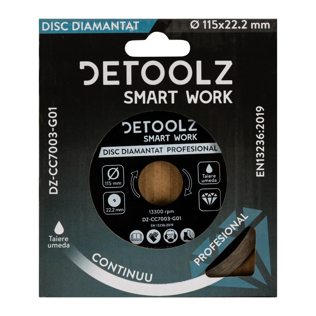 Disc diamantat continuu Detoolz 115x22.2mm, taiere umeda