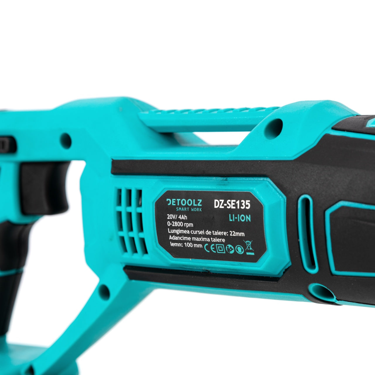 Fierastraul pendular sabie cu acumulator 20V/4Ah, Detoolz DZ-SE135 este un produs robust, eficient si usor de utilizat pentru operatii de taiere cu reazem fix a lemnului, materialelor plastice, metalului si materialelor de constructii necesare in cazul constructiilor noi, sau in lucrari de renovare.