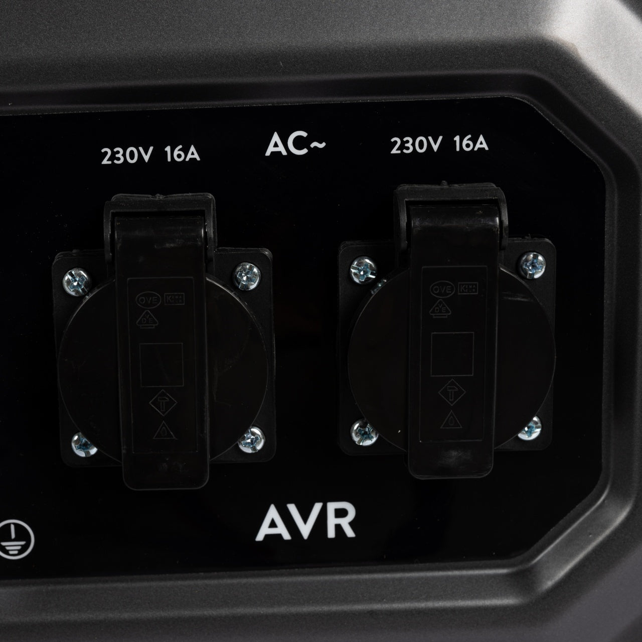 de tensiune alternativa de 230Vca sau tensiune continua 12Vcc. In cazul aparatelor casnice va rugam sa verificati compatibilitatea pe baza datelor producatorului referitoare la puterea aparatelor conectate sa fie sub puterea maxima dezoltata de generator.