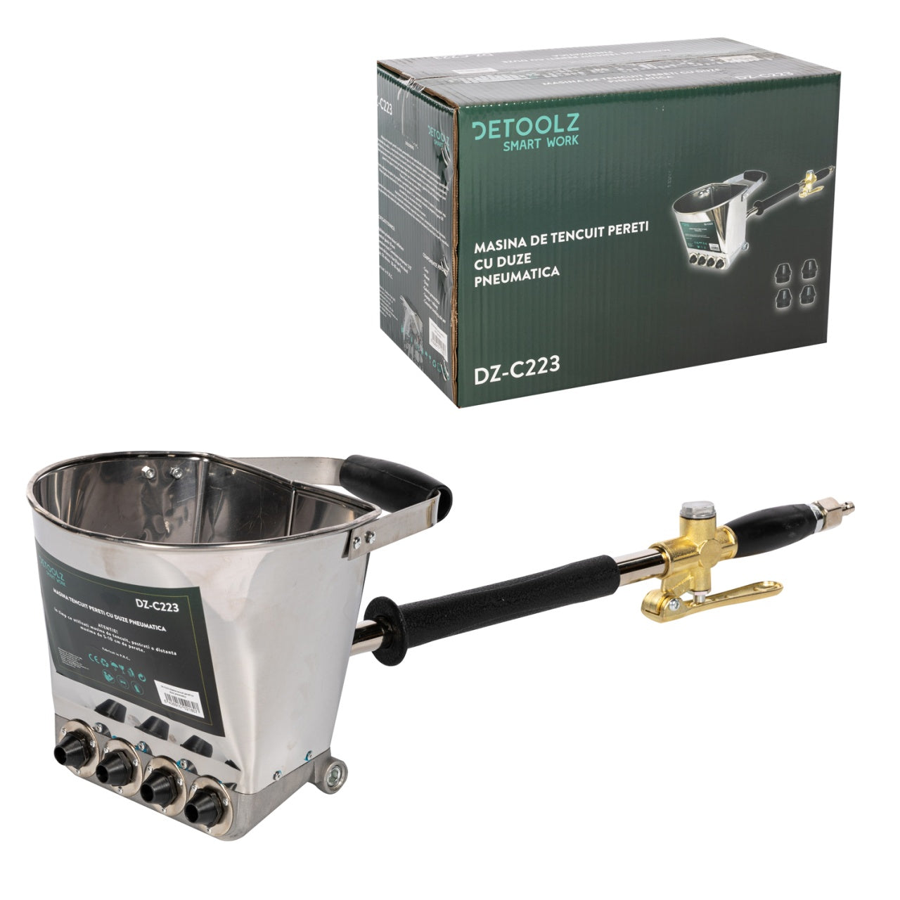 Masina de tencuit pneumatica cu duze Detoolz DZ C223 este destinata tencuirii peretilor.